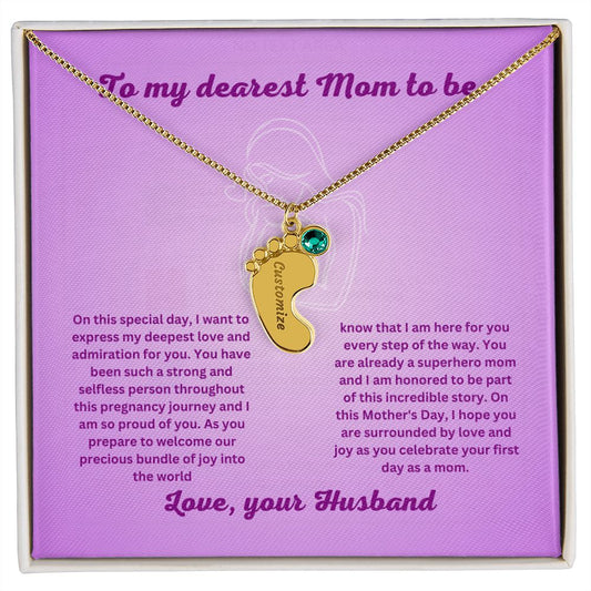 Mom to be-Customized Necklace Baby Feet with Birthstone