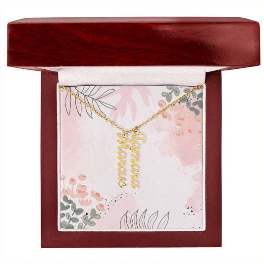 Mother-Customized Vertical Name Necklace with Message Card