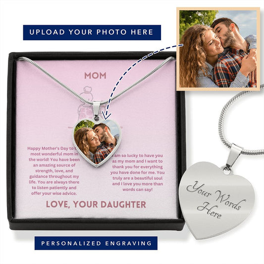 Mother-Customized Heart Necklace with Message card (from Daughter)