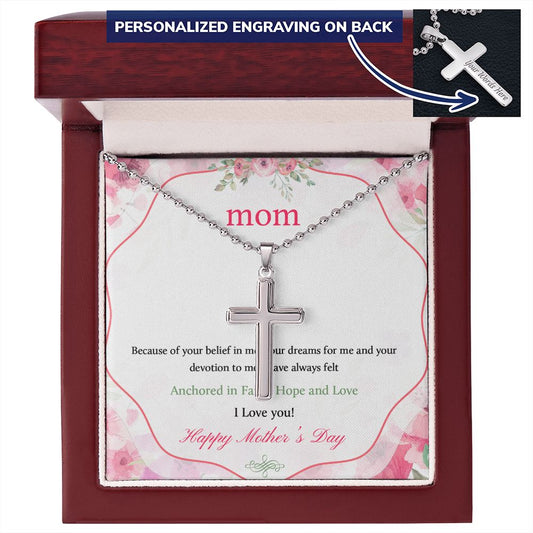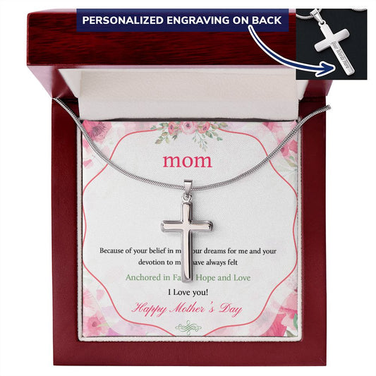 Mother-Customized Stainless Steel Cross Necklace (with Message Card)